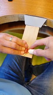 Here, the design is getting more '3D'. Not by the use of a fancy 3D printer, but by using simple hand tools to form a piece of aluminium wire to fit the design. I really need this to see if a design works, as my visualization skills lack. You can see I wrote down 'Granaat' instead of 'Carnelian'. I could tell you that 'Granaat' is Dutch for 'Carnelian', but it is not. I simply thought all red stones in our stock were Garnet (Granaat) and did not read the label at the bottom of the container...